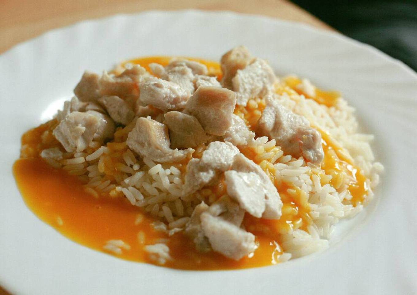 En los días de Navidad se come tanto, que también nos sobra comida... A mi me ha sobrado pollo cocido de un caldo, crema de calabaza y un poquito de arroz blanco. He probado a mezclarlo y ¡ojo! Que está muy rico. Además Aitor ha podido comérselo genial, porque es un plato muy sano y completo para todos.