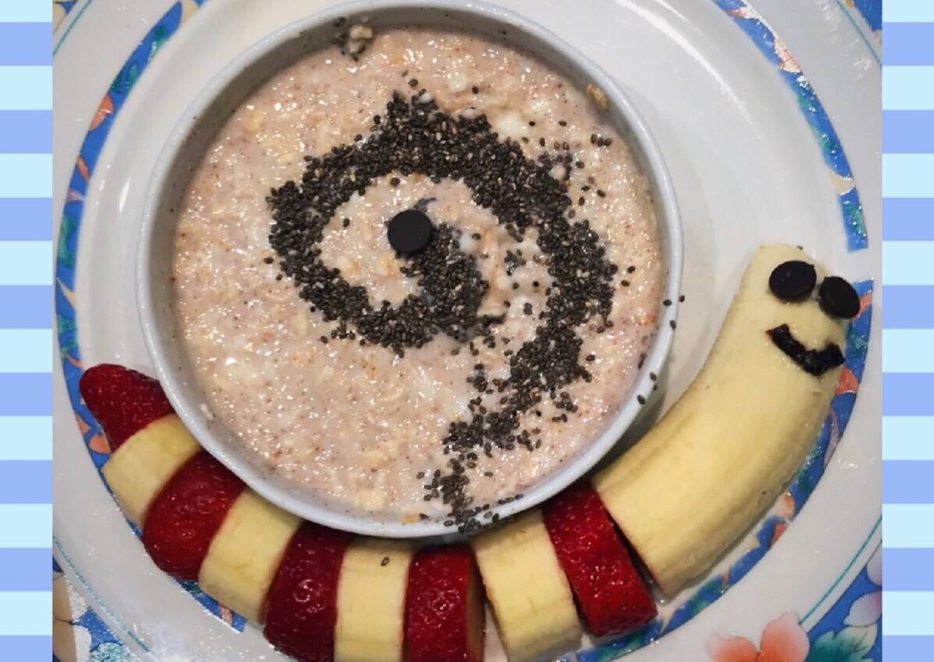Desayuno completo y nutritivo para los chicos. Caracol! 🐌 Con fruta, avena y yogur