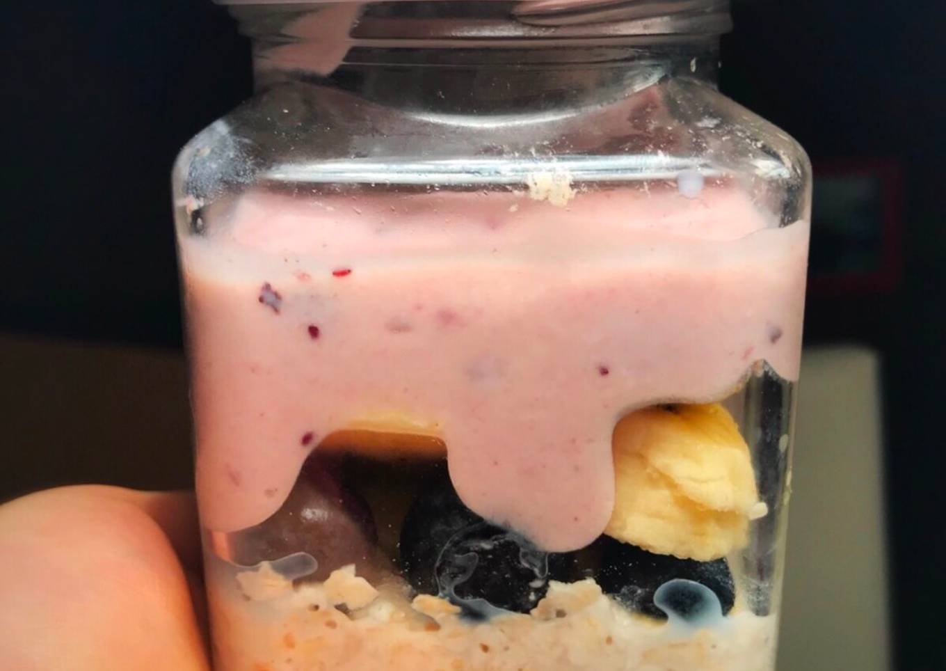 OVERNIGHT OATS🤩🎉 Es un #desayuno súper #delicioso, #saludable y #completo, con #avena, que se hace la noche anterior.😱🌙 Se mezcla todo y esta listo para comer al día siguiente, llevar al #trabajo, #facultad, #escuela... Esta versión es lo más! DE #ARÁNDANOS!