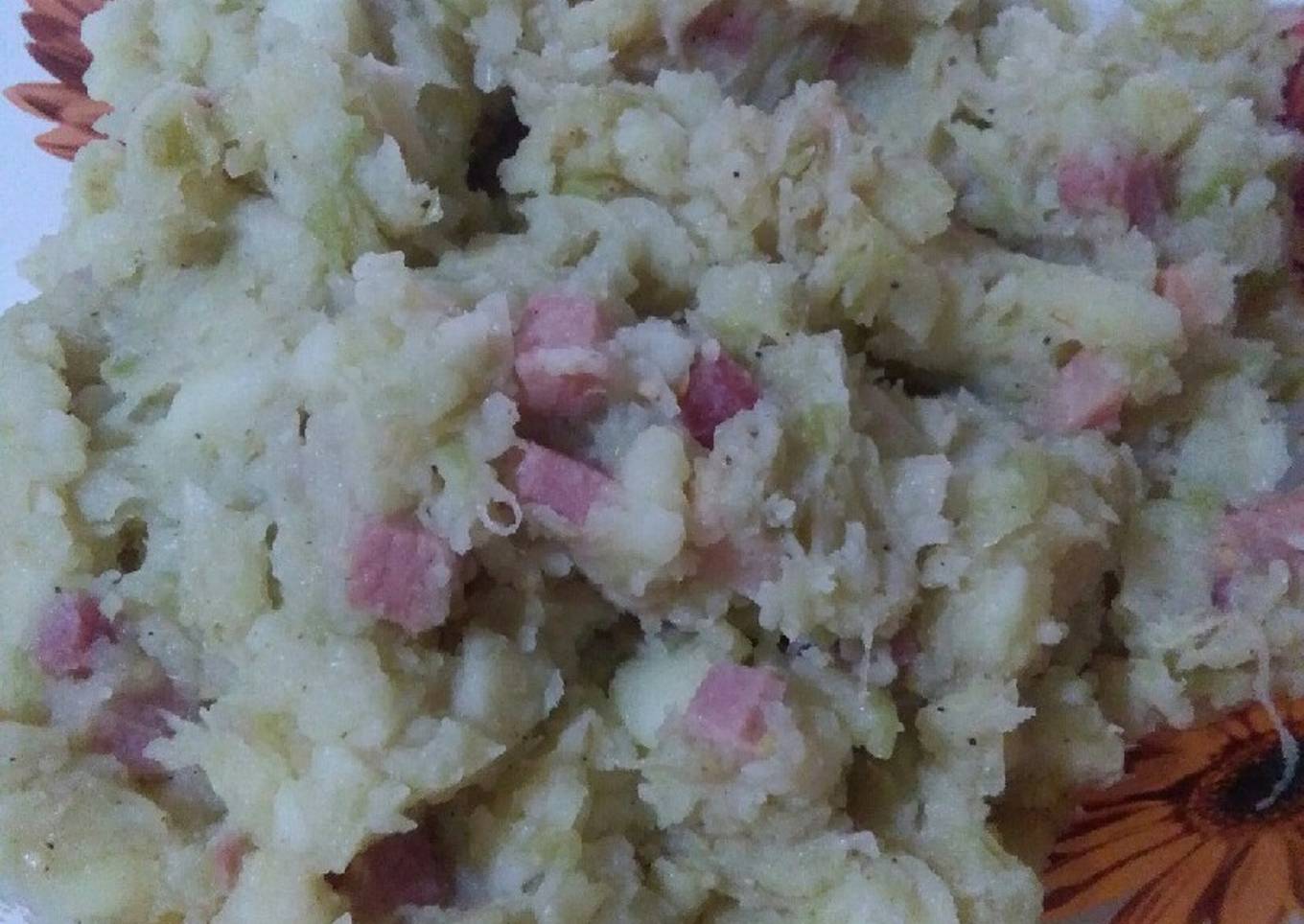 Es una especie de puré está muy rico y es súper fácil de hacer. Como acompañamiento a carne a la plancha es genial y lo mejor que los niños ni se enteran que están comiendo verdura, yo les digo que es puré de patata y jamón y ellos como inocentes que son se lo creen jiji