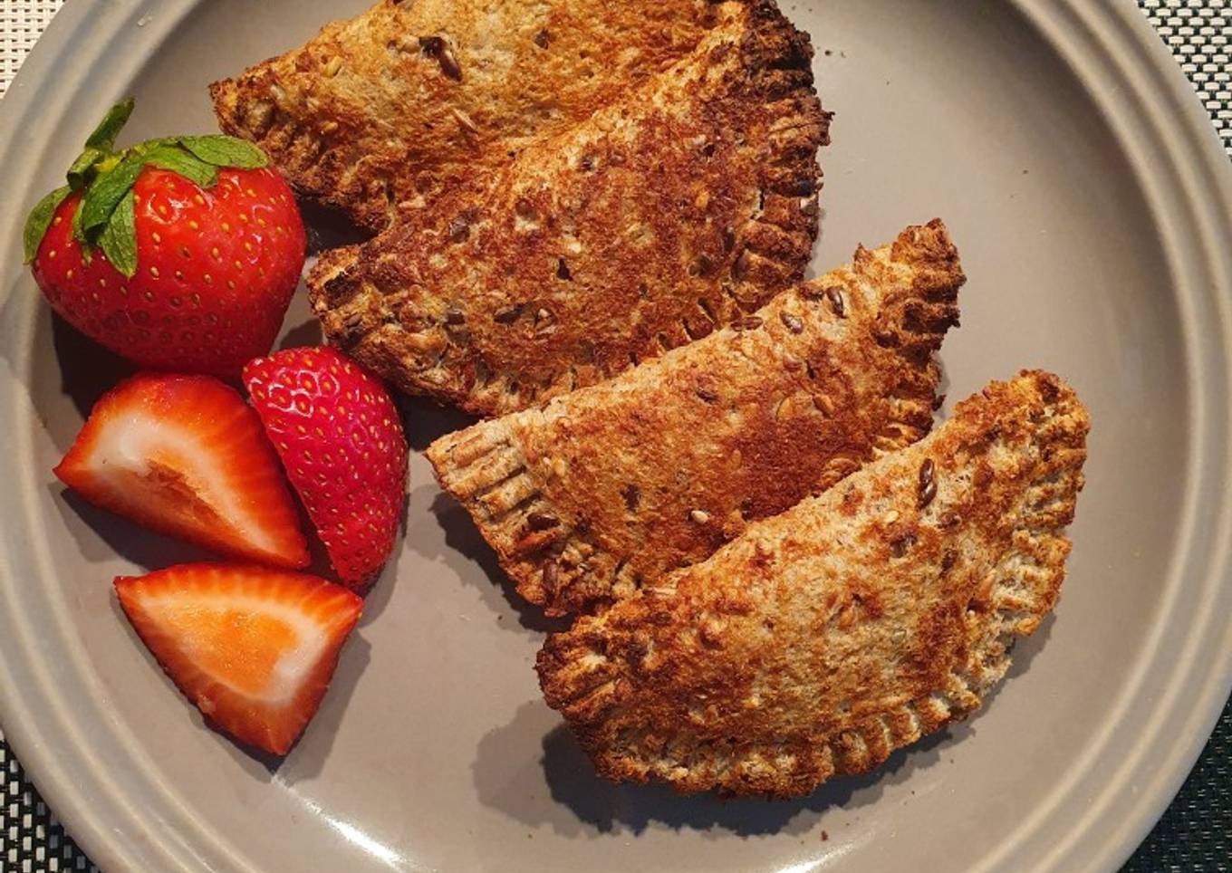 - Rellenamos, doblamos a la mitad y con un tenedor sellamos las orillas. Con una brochita o con la la yema de tus dedos bañalas con un poco de clara de huevo. Metemos a la Air fryer por 3 min a 180°.