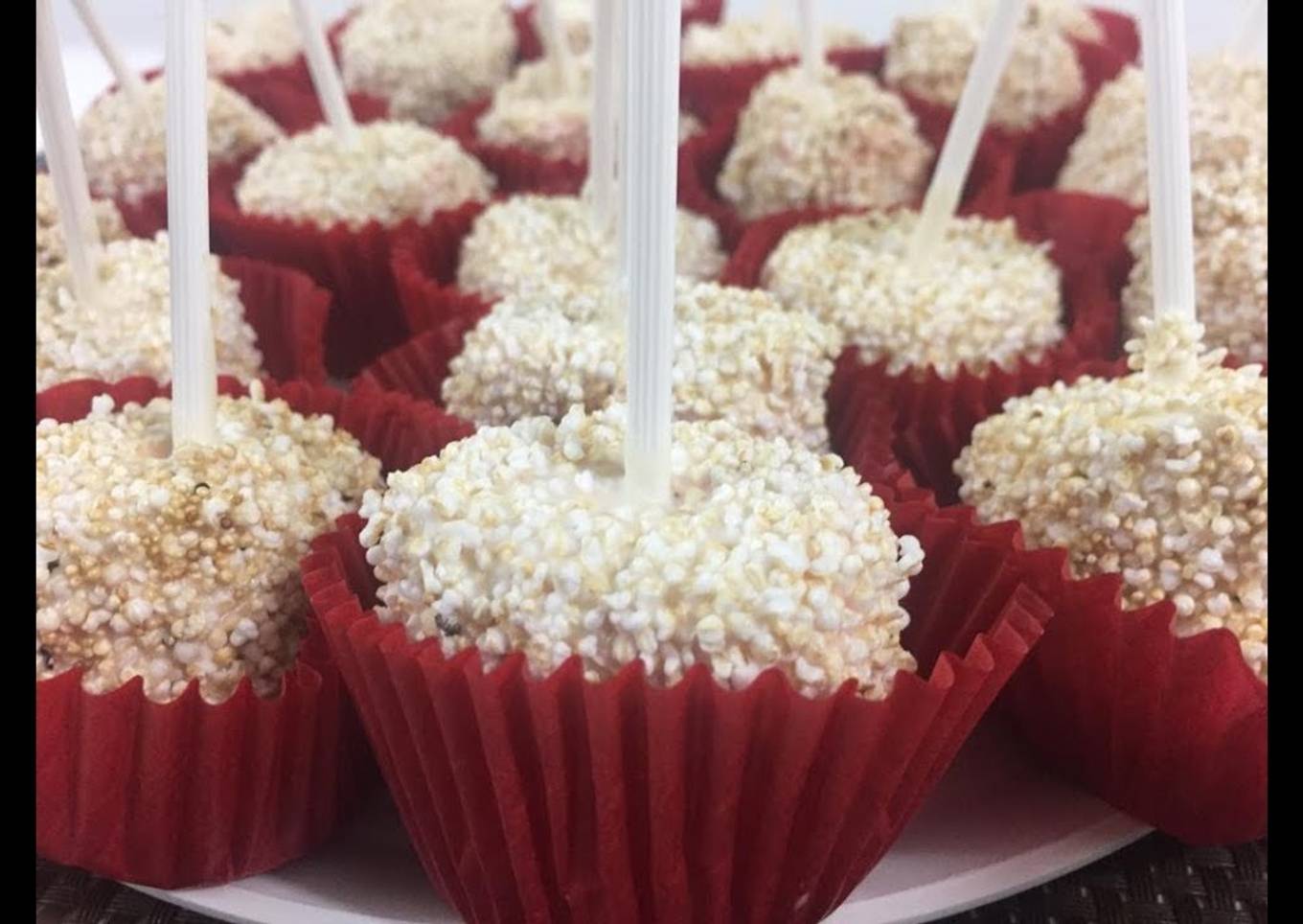- Tomamos un bombón y lo cubrimos de chocolate, lo revolcamos en amaranto