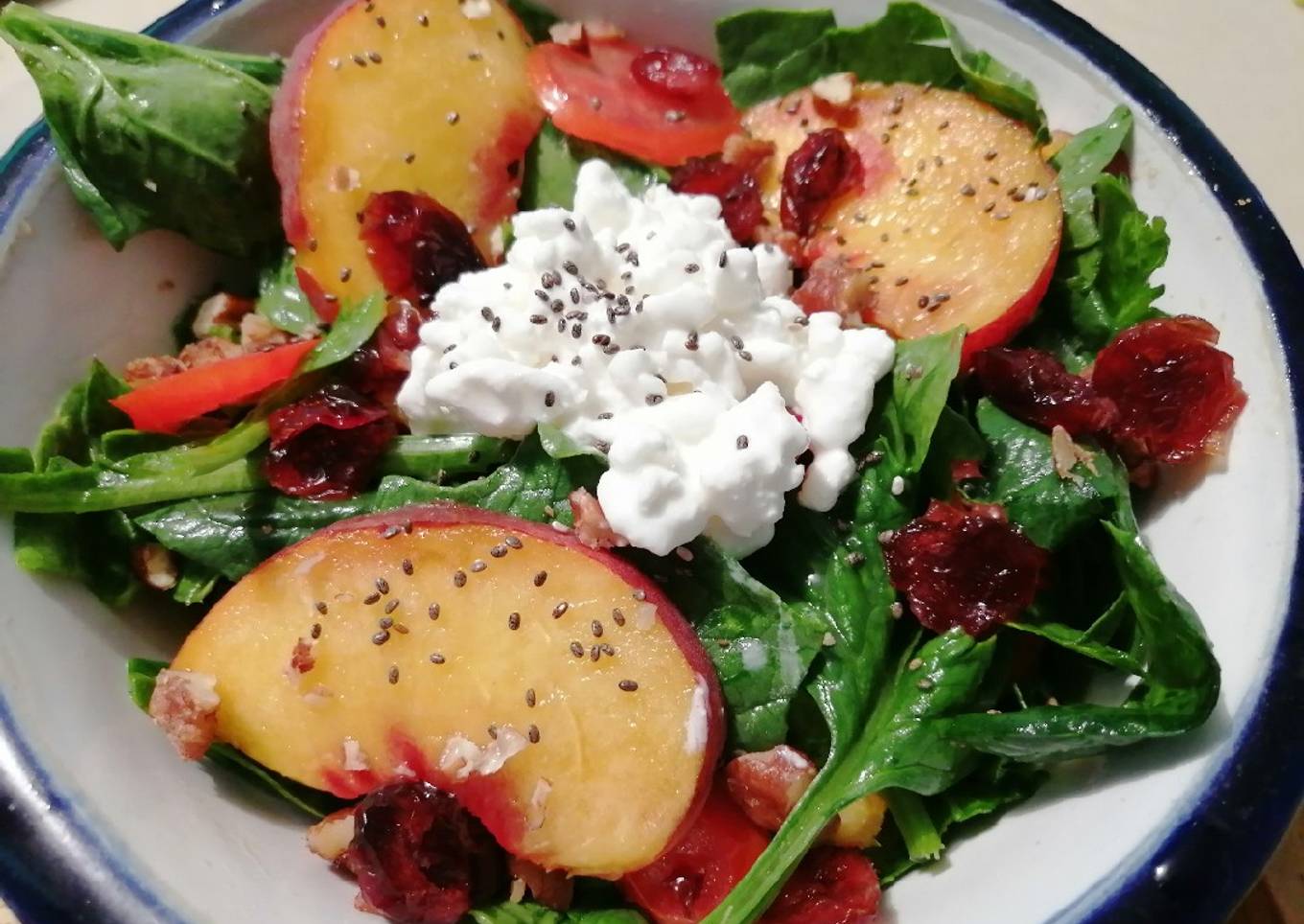 Ensalada de durazno con jitomate y espinacas 🍑👌